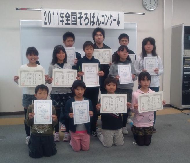 2011年12月4日に2011年全国そろばんコンクールが行われました。優勝者は次の通りです。