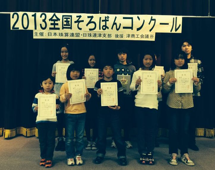 2013年12月8日に2013年全国そろばんコンクールが行われました。結果は次の通りです。
