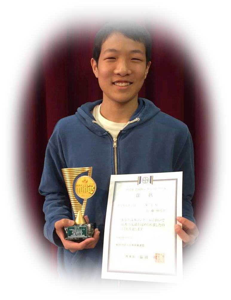 ◆ あんざんコンクール 中学1年生の部 日本一 表彰 近藤伸乃介君