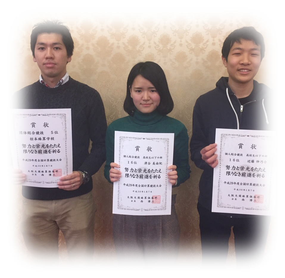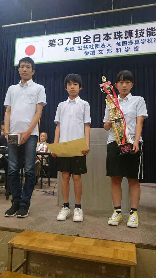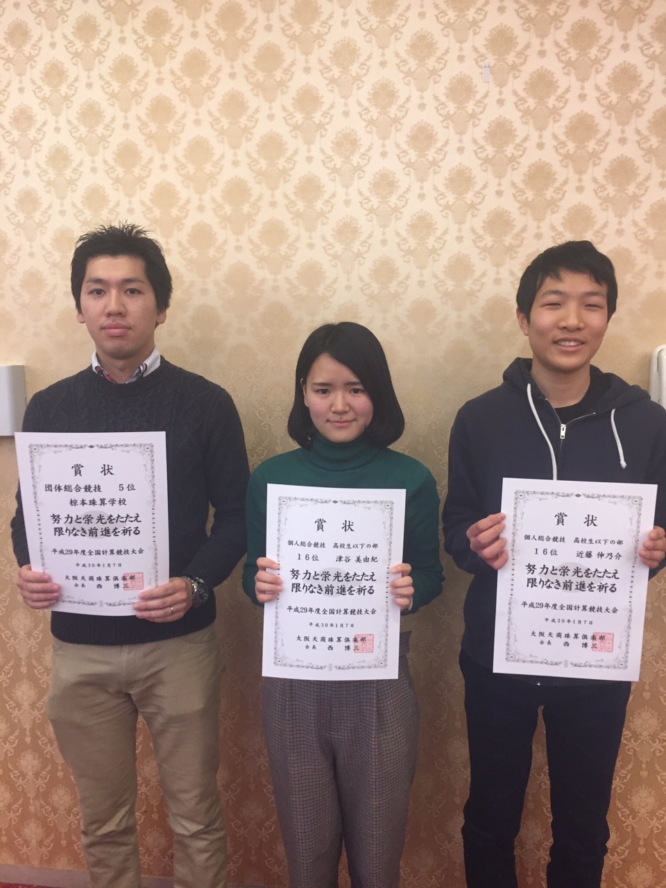椋本珠算学校 5位 (平澤理輝・津谷 美由紀・近藤伸乃介)