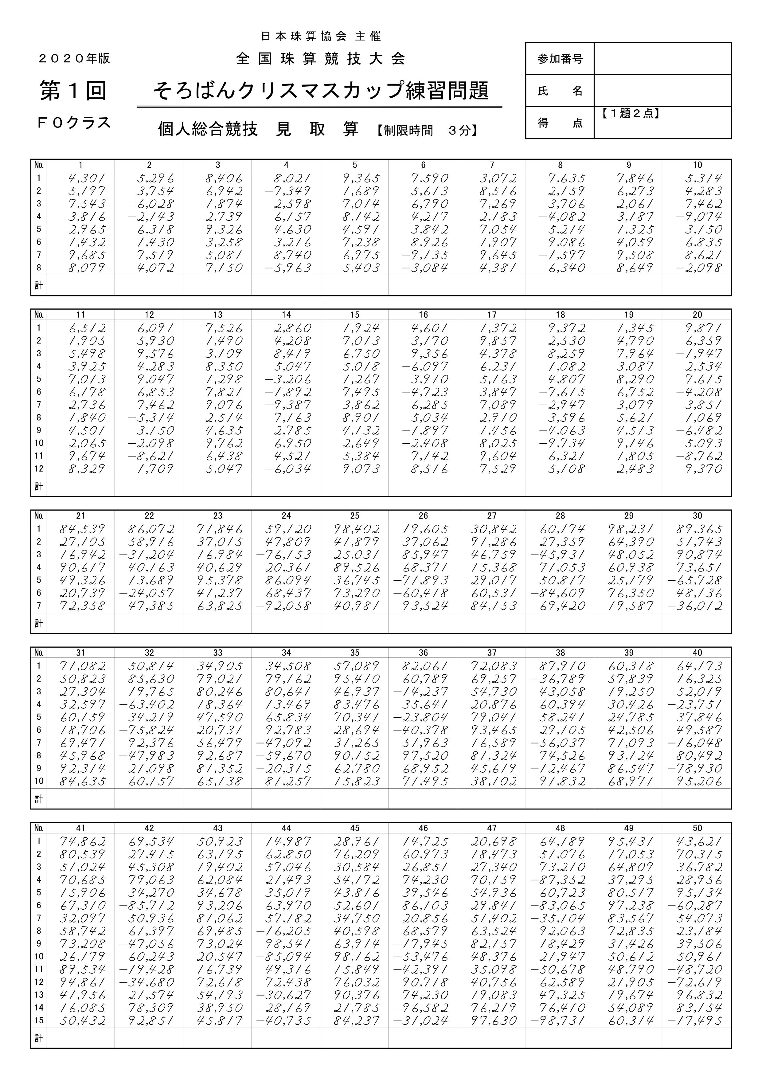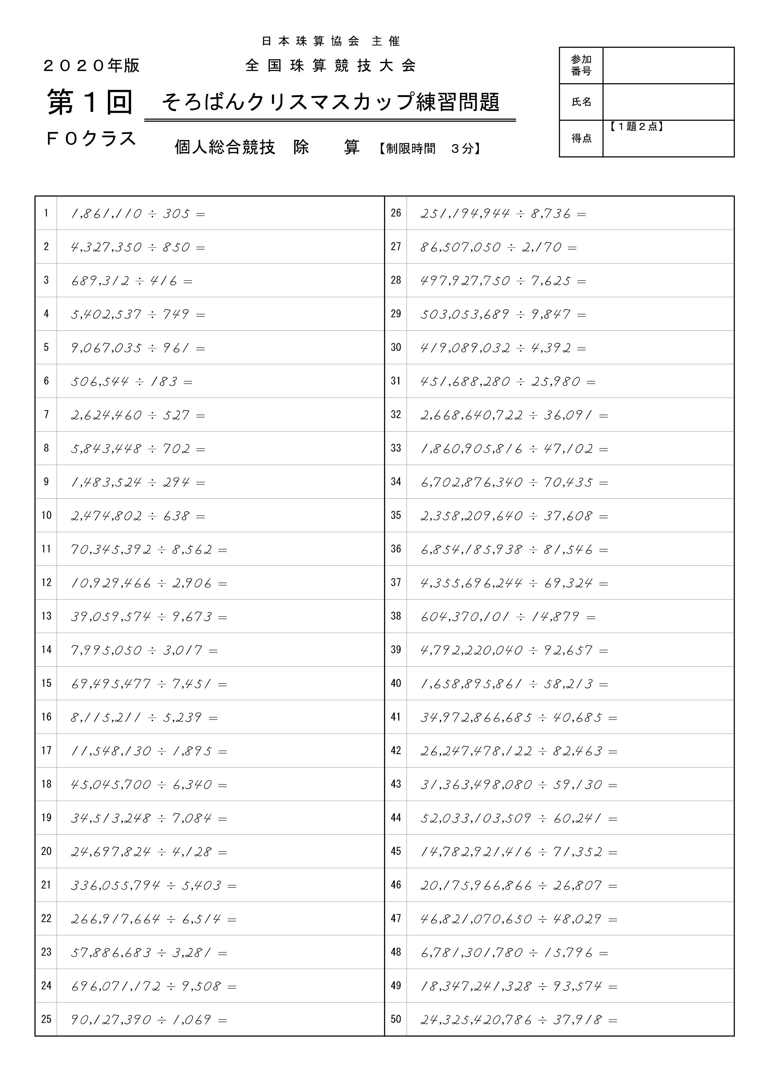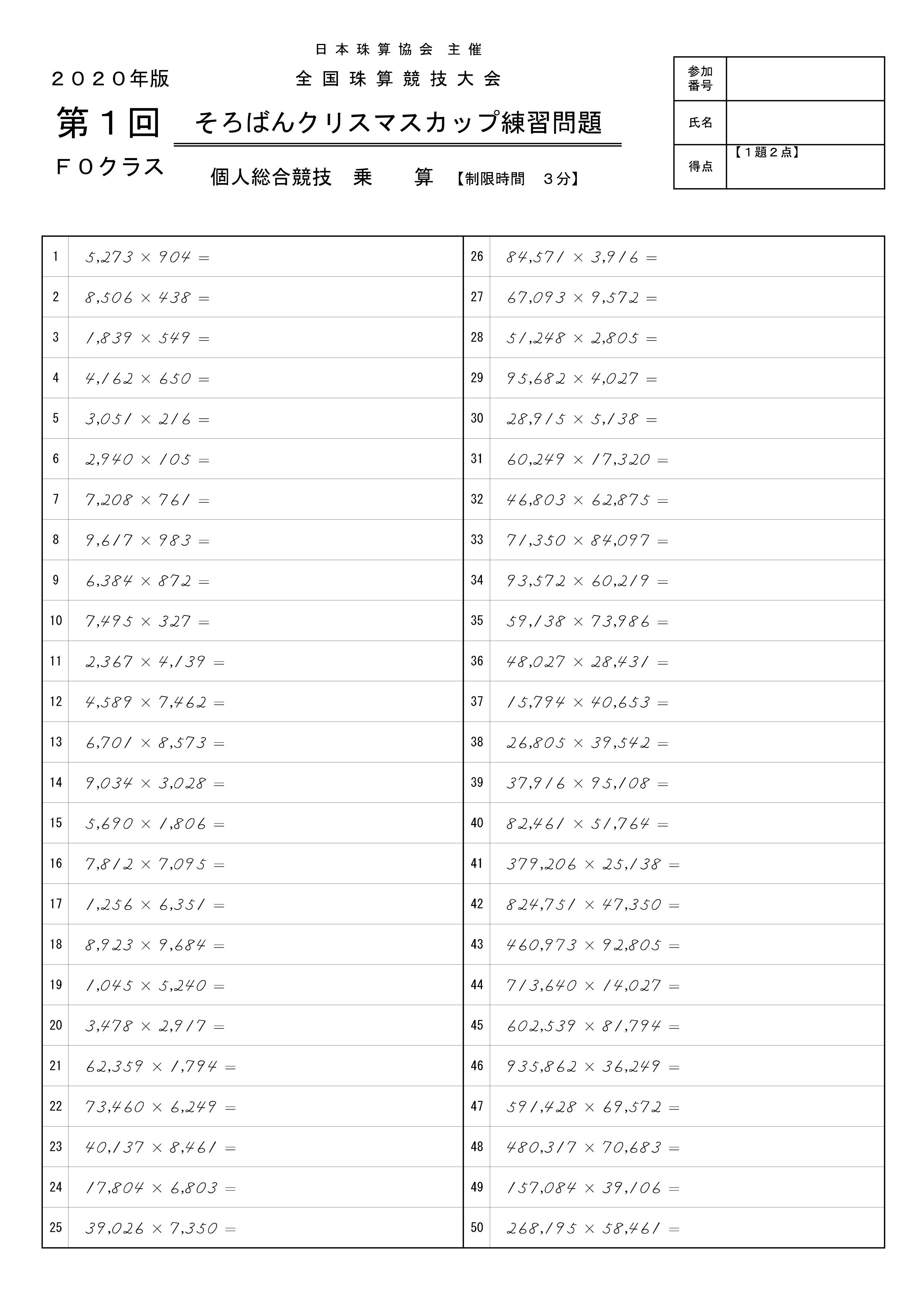 各種目制限時間は3分です トップレベルの選手は暗算で時間内に全部計算することができます