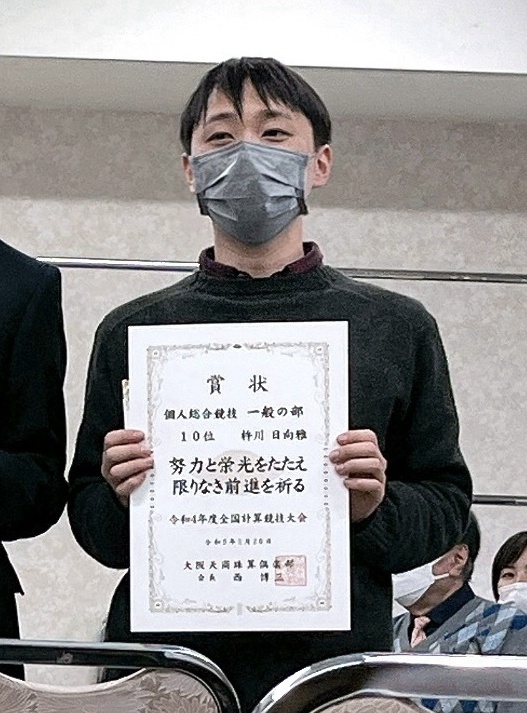 2023年2月26日(日)大阪府・大阪府社会福祉会館にて令和4年度全国計算競技大会が行われ、当教室からは暗算十段者7名が参加しました。この大会は問題の難易度がとても高く、一般の選手が多く参加していることが特徴です。